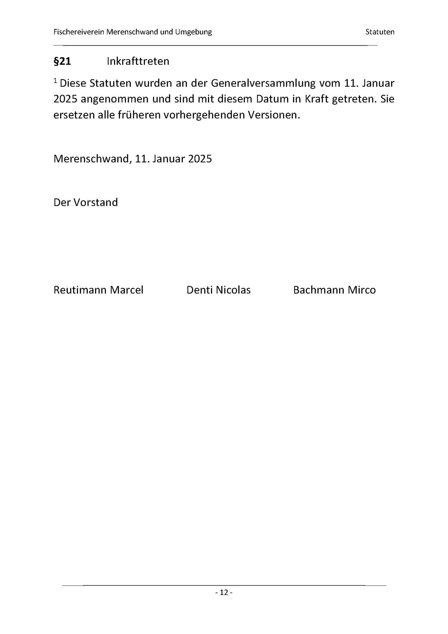 Mit der Amtsübernahme des neuen Vorstands zu Beginn des Jahres 2025 wurden auch die Statuten aus dem Jahr 2003 zeitgemäss überarbeitet und durch die Generalversammlung im Februar 2025 genehmigt.